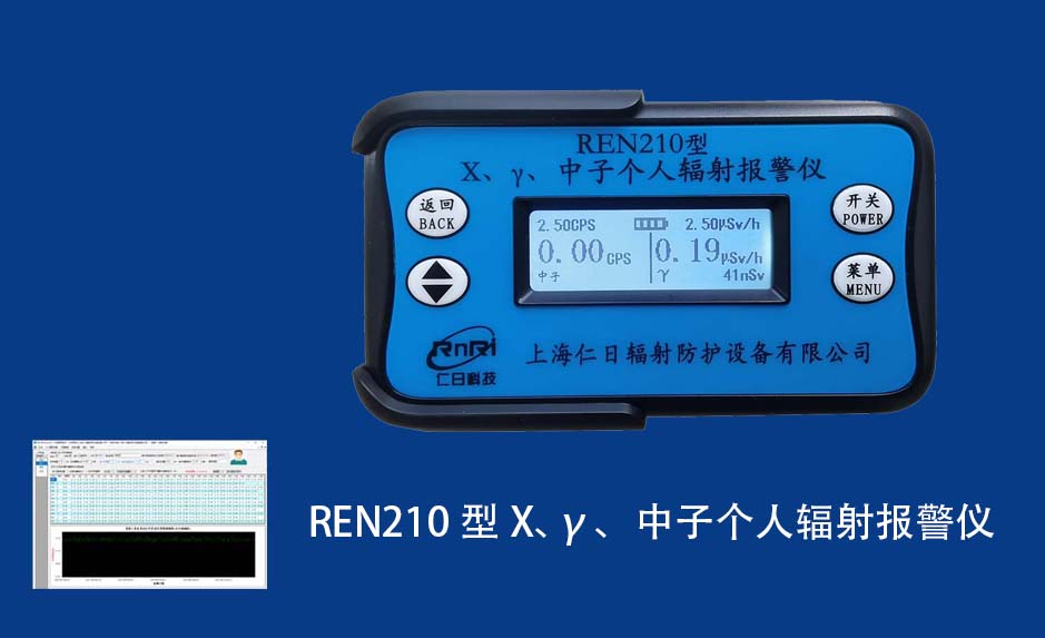 REN210 個人計量報警儀REN210型X、γ、中子個人輻射報警儀內(nèi)置SiPM和鋰玻璃晶體組成中子探測器儀器,采用反照率方式探測中子射線,同時也能探測X、γ射線。因此它可同事監(jiān)檢測X、γ、中子三種射線。能顯示工作場所的劑量當(dāng)量率和累積劑量,更換電池時,日期及累積數(shù)據(jù)能永久保存。可選配RenRiPersonal個人劑量管理軟件,該軟件可存儲多個人的歷史數(shù)據(jù),能記錄日累積、月累積、年累積、輻照時長、計算平均劑量率、扣除或不扣除本底輻射,且以文字和圖譜的方式展現(xiàn)數(shù)據(jù)。廣泛應(yīng)用于環(huán)保、化工、水泥、煤礦、土木工程、石油、醫(yī)院、疾控、進出口商檢、核電、加速器、機場、中子源庫和其他安檢、邊境控制海關(guān)檢測等領(lǐng)域中的工作人員進行個人安全防護監(jiān)測及放射性提示。